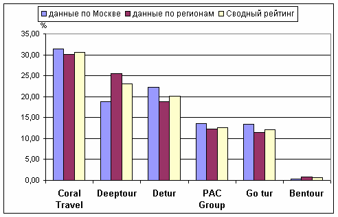 | Рейтинги туроператоров по объемам сделок, 2005г. |