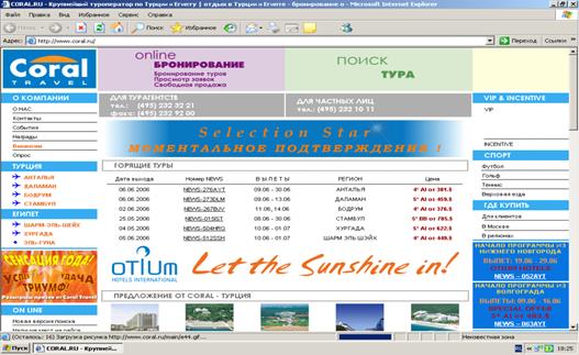 В качестве объекта исследования автором дипломной работы была выбрана туристическая компания "Корал Тревел" - крупнейший туроператор по выездному туризму, занимающийся разработкой собственного турпродукта и отправкой российских туристов за границу. С самого начала своей деятельности и по сегодняшний день фирма функционирует как туроператор, разрабатывая и реализуя через агентскую сеть собственный туристский продукт -регулярные групповые и индивидуальные туры на базе собственной чартерной программы.