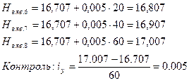 Контролем правильности является расчет проектного уклона по линии х и у: