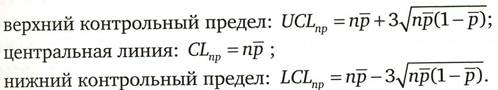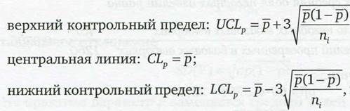 Средняя доля негодных изделий р рассчитывается так же, как и раньше, а контрольные пределы для значений рi определяются так:
