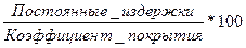 4. Бесприбыльный оборот оценивает соотношение постоянных издержек и коэффициента покрытия: