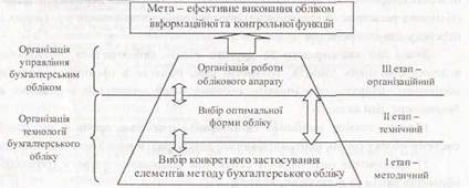 Організація бухгалтерського обліку складається з трьох взаємопов'язаних станів (рис. 1).