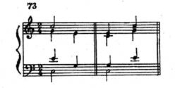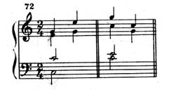 Неважко помітити, що в останніх двох випадках (71 і 72) обидва голоси, що рухаються, взаємно переміщаються: в прикладі 71 (такт 1) в сопрано з'являється звук мі, що був до того в тенорі, який, у свою чергу, переймає попередній сопрановий звук - до; в прикладі 72 (такт 1) аналогічним чином взаємно обмінюються звуками сопрано (соль-мі) і альт (мі-соль).