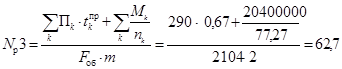 Fоб = Fp – (tрем + tосм + tтехн) = 2456 – (192 + 100 + 60) = 2104 ч.