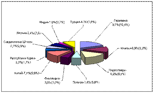В российском импорте более 50% приходится на долю машинно-технической продукции. Среди основных статей в структуре импорта за 2008 г. :