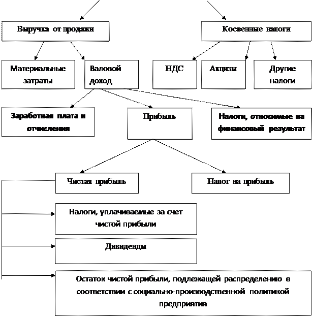 Выручка используется в первую очередь для оплаты счетов поставщиков сырья, материалов, покупных полуфабрикатов, комплектующих и т.п. Остаток выручки после возмещения стоимости израсходованных материальных ресурсов и возмещения амортизации внеоборотных активов формирует валовой доход, из которого в первую очередь возмещаются средства, израсходованные на оплату труда. Оставшиеся после этого средства составляют чистых доход предприятия, направляемый на уплату налогов, относимых на финансовый результат деятельности и формирование прибыли.