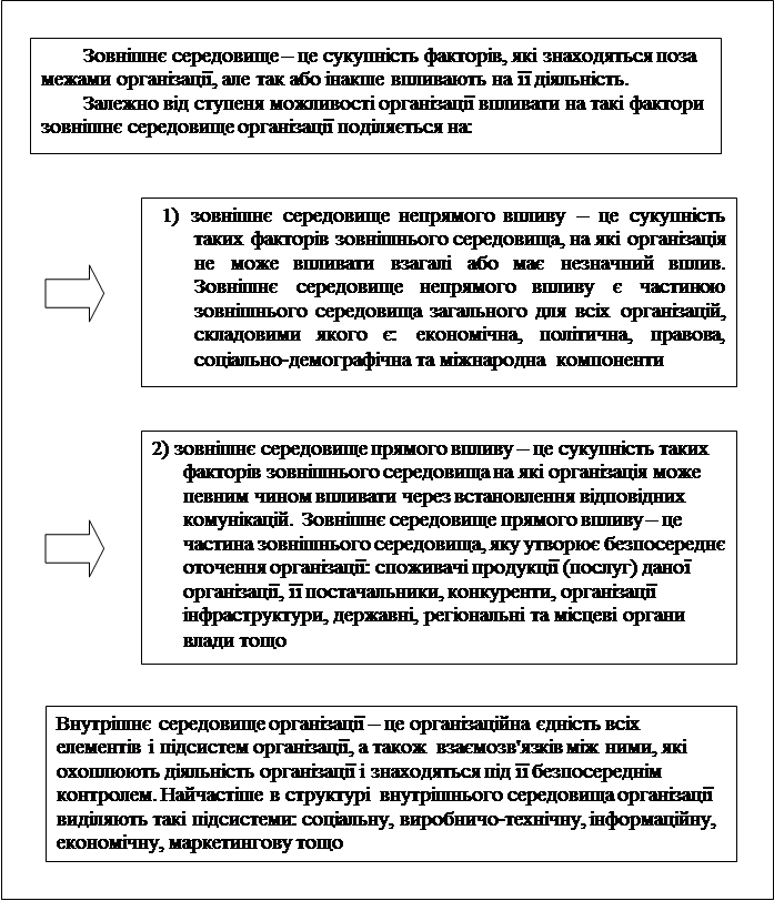 Рис. 1.2. Зовнішнє і внутрішнє середовище організації