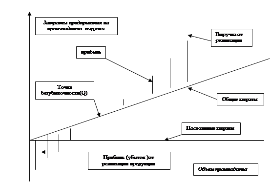 Влияние структуры производственных затрат на прибыль предприятия, структура производственных затрат предприятия оказывает прямое влияние на размер получаемой прибыли и динамику ее изменения в перспективе. Для изучения этого влияния все затраты предприятия необходимо поделить на постоянные и переменные, определить безубыточный объем реализации, а также рассчитать показатель уровня операционного рычага.