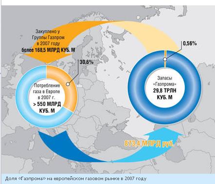 В 2008 году «Газпром» продал в Европе 161,5 млрд. куб. м природного газа, увеличив поставки по сравнению с 2006 годом на 3,5%.