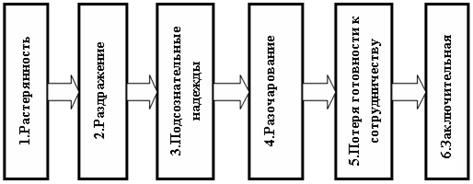Процесс потери интереса к труду можно рассмотреть как состоящий из шести стадий (Рис.3)