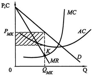 Каждый конкурент в условиях монополистической конкуренции имеет дело с нисходящей функцией спроса: для наращивания объема выпуска (и продаж) ему необходимо идти на снижение цены на свой товар. Поэтому оптимальное соотношение «цена-количество» определяется монополистическим конкурентом таким же образом, как и в условиях чистой монополии.