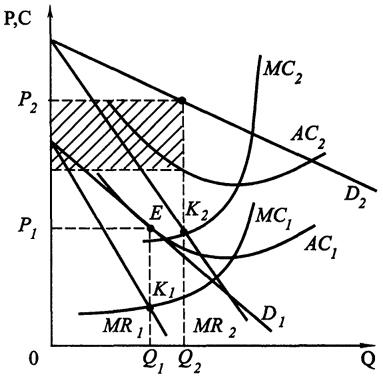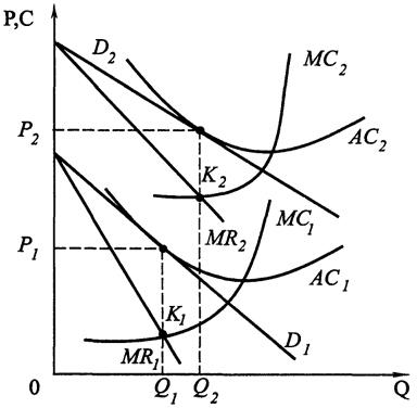 Увеличение же количества фирм в отрасли приведет к тому, что общий, суммарный спрос на число фирм и спрос на конкретный товар будут распределяться на большее число фирм, и спрос на продукцию данной фирмы понизится.