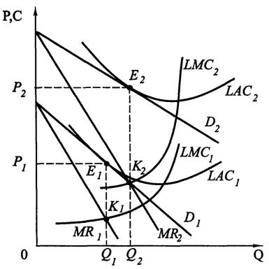 Таким образом, в краткосрочном интервале монополистический конкурент подобен монополисту. На долговременном интервале получаемая в отрасли экономическая прибыль будет стимулировать вступление на рынок других фирм, поскольку доступ на рынок монополистической конкуренции является достаточно легким.