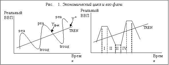 при небольшой вынужденной безработице. Уровень безработицы колеблется в ходе экономического цикла. В фазе кризиса и депрессии спрос на рабочую силу сокращается, а уровень безработицы увеличивается. В фазе оживления и подъема спрос на рабочую силу растет, а безработица сокращается.