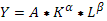 где Y — объем производства, K — капитал, L — труд, α и β — коэффициенты производственной функции, А — параметр производства (характеризующий технологию производства).
