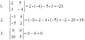 Таким чином, визначник першого порядку дорівнює різниці добутків елементів головної й побічної діагоналей.