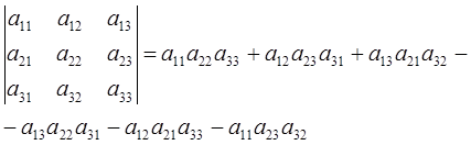 //a11a22a33 +a12a23a31 +a13a21a32 -a13a22a31 -a11a23a32 -a12a21a33