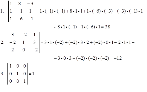 Доданки з мінусом утворяться по тій же схемі відносно побічної діагоналі.