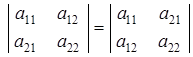 Властивість 1. Величина визначника не зміниться, якщо його рядки поміняти місцями з відповідними стовпцями.