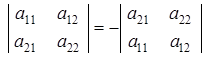 Властивість 2. При перестановці двох рядків (або стовпців) визначник змінює знак на протилежний, зберігаючи абсолютну величину.