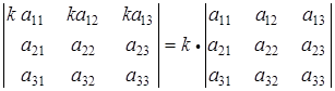 Властивість 3. Загальний множник елементів рядка (або стовпця) можна виносити за знак визначника.