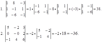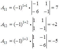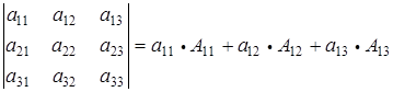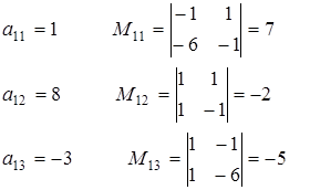 //знаходимо визначник склавши усі добутки коефіцієнтів на їх алгебраїчне доповнення