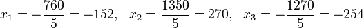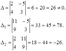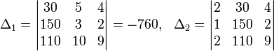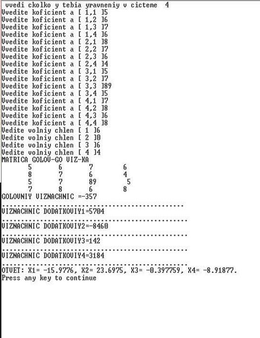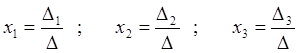 //далі знаходимо додаткові визначники і одразу ж невідомі системи