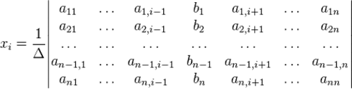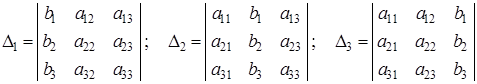 //підставим у Кий стовпець основої матриці стовпець із вольних членів, утворивши додаткові визначники.