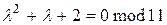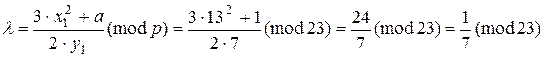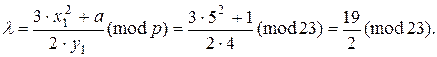 Мультипликативно зворотний елемент числу 2 у полі знаходимо з рівняння