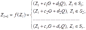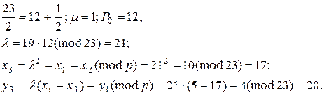> ® відповідають дві точки ділення й , розташовані на одній діагоналі кола й пов'язані співвідношенням із точкою другого порядку. Значення точок , верхнього півкола можна розглядати як додатні, а нижнього півкола - як від’ємні. Координати кожної такої пари збігаються, а . У процедурі ділення, що прагне до точки , можна ігнорувати знак точки, зазначимо, що є лише - координата точки. Назвемо "правильною" точкою ділення точку лівого півкола (на рис 2 – точка ). Послідовний вибір "правильних" точок ділення в процедурі веде до точки й, відповідно до розв’язання . Злом криптосистеми, у такий спосіб зводиться до вирішення еквівалентних проблем: