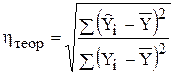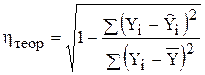 Використовуючи дані табл. 3.2 значення теоретичного кореляційного відношення розраховуємо по одній з нижченаведених формул: