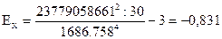 Ех<0, а це означає, що розподіл низковершинний.