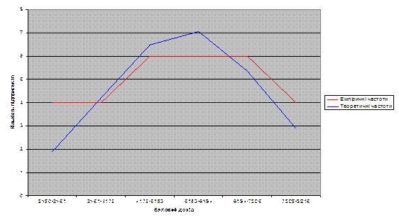 табл=7,81 то з імовірністю 95% можна стверджувати, що в основі емпіричного розподілу підприємств по величині валового доходу лежить закон нормального розподілу, а розбіжності між теоретичними й емпіричними частотами пояснюються випадковими факторами.