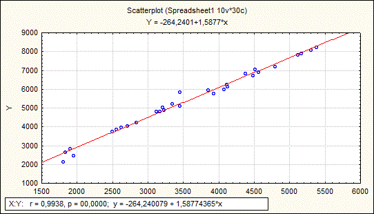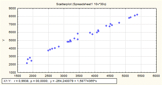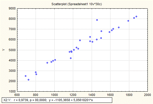 , - це означає, що лінійний коефіцієнт кореляції вважається значущим, а зв'язок між х і Y – істотним.