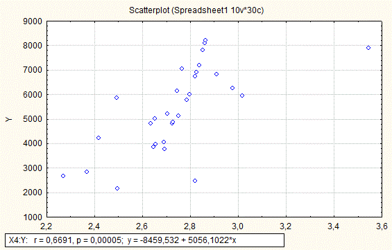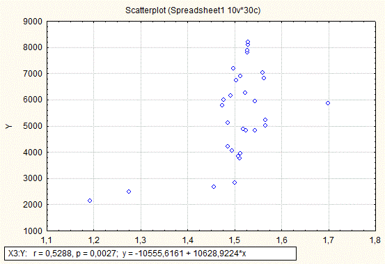 - провести парний кореляційно – регресійний аналіз залежності Y від двох-трьох чинників, відібраних з комплексу тих, що вивчаються( X1, X2, X3, X4, X5);