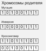 Рис.2. Основные операторы генетического алгоритма (анимация - 8 циклов повторения)