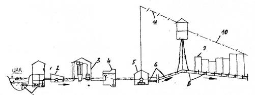 В данном технологическом процессе используются следующие реагенты: хлор с дозой 7 мг/л, коагулянт с дозой 40 мг/л, флокулянт с дозой 0,3 мг/л.