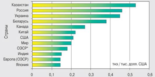 Энергоемкость полезно сравнивать со странами с близкими природно-климатическими условиями. Такими для России являются страны Скандинавии и Канада. Наблюдается отставание в 2,5-3 раза. Отсюда становится очевидной неконкурентоспособность российской продукции на мировом рынке.