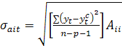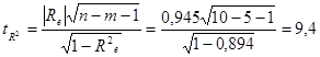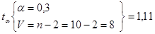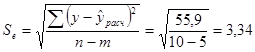 Погрешность параметров уравнения, рассчитанная с помощью таблиц распределения Стьюдента, равняется 1,11 (формула 7).
