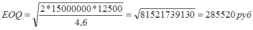 Текущий запас - основной вид запаса, поэтому норма оборотных средств в текущем запасе является главной определяющей величиной всей нормы запаса в днях. На размер текущего запаса влияет периодичность поставок материалов по договору с поставщиками (цикл снабжения), а также объем их потребления в производстве. При поставках материалов по согласованному графику и ежедневном их потреблении в производстве равными партиями средний интервал между поставками, то есть цикл снабжения, рассчитывается путем деления 360 дней на число планируемых поставок. При этом учитываются сроки совпадения поставок одного и того же вида материалов от разных поставщиков. При местных поставках средний интервал определяется путем деления оптимальной с точки зрения экономической целесообразности партии материалов на их среднедневное потребление. Если в договорах не указаны конкретные сроки поставок, средний цикл снабжения определяется по основании фактических данных о поступлении материалов в истекшем году. В этом случае средний интервал между поставками может быть определен как среднеарифметическая или средневзвешенная величина, что зависит от отсутствия или наличия резких колебаний в сроках и объемах поставок.