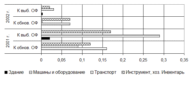 Анализ движения фондов показал, что в 2006г. на предприятии происходит выбытие производственных фондов – коэффициент выбытия в целом по производственным фондам превысил коэффициент обновления на 0,02. В 2006г. обновилась только 0,4% основных производственных фондов.