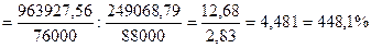 В общем, стоимость валовой продукции уменьшилась на 56,63%, т.е. на 1638796 р.