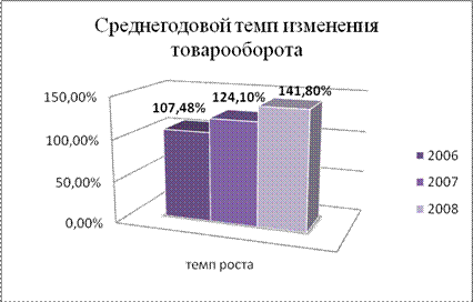 Опытно – статистический метод позволяет определить объем продаж в ООО “Глобус” исходя из объема товарооборота за 2008 год ( 57816,5 тыс. руб.) и среднегодового темпа изменения товарооборота за три года предшествующих планируемому году.
