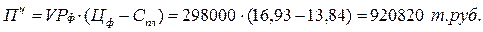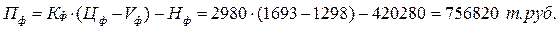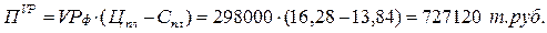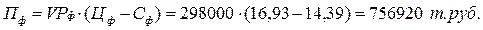 3. Определим прибыль при реализации продукции по фактическим ценам: