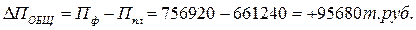 Факторный анализ прибыли по методике маржинального анализа (см. рисунок 6) показал, что величина прибыли, которую получило предприятие в 2009 году, составила 756920 тыс. руб., что на 95040 тыс. руб. больше, чем в предыдущем.