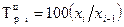 Для определения абсолютной величины, стоящей за каждым процентом прироста среднедушевого денежного дохода населения России в месяц, рассчитывается показатель абсолютного значения 1% прироста (А%). Один из способов расчета - (11).
