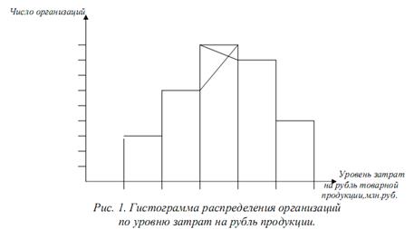 - исследование структуры совокупности (построение статистического ряда распределения предприятий по признаку уровня затрат на рубль продукции), графика полученного ряда распределения, расчет характеристик ряда распределения.
