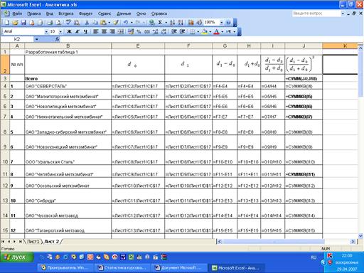 Таблица для выполнения компьютерных расчетов по формуле А. Салаи представлена на рисунке 4.