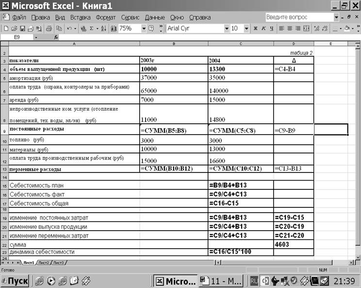 Расчеты показателей себестоимости выполнены с применением пакета прикладных программ обработки электронных таблиц MS Excel, набор и редактирование текста MS Word в среде Windows.