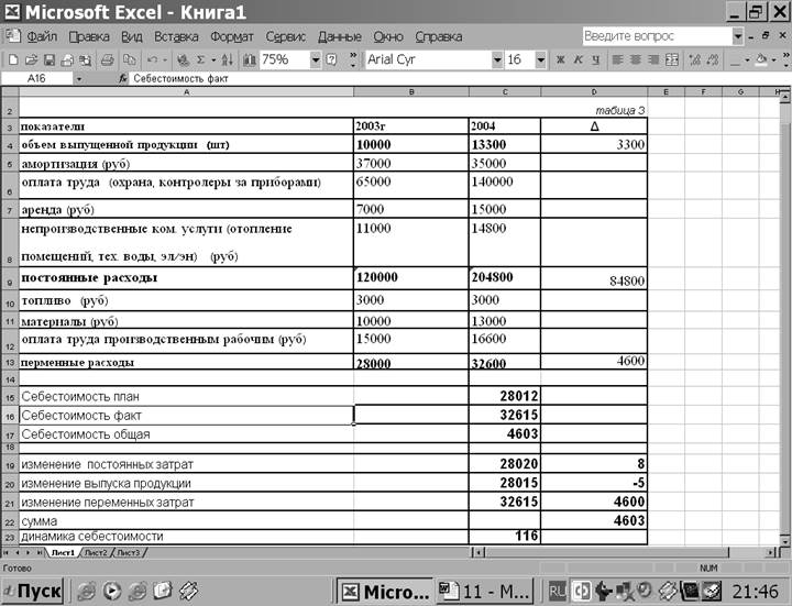 Произошел рост себестоимости на 16%, что в абсолютном выражение составляет 4603 руб.